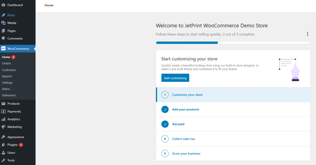 Once WooCommerce is installed, the setup wizard will guide you through the configuration. You can skip some steps, but essential settings—such as payment methods and shipping options—must be completed.