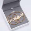 • Custom hoop earrings are an excellent choice if you want to give a one-of-a-kind gift. Our double circle hoop earrings are made specifically for women. Women’s name hoop earrings can be given as an anniversary gift to a girlfriend, bridesmaid, sister, friend, mother, or wife.