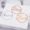 • All of our personalized hoop earrings are packaged with care. This name earring, for example, has a transparent plastic packaging in addition to the exquisite gift box. As a result, when you receive earrings bearing that name, they will be as gleaming as the day they were made, with no blemishes.