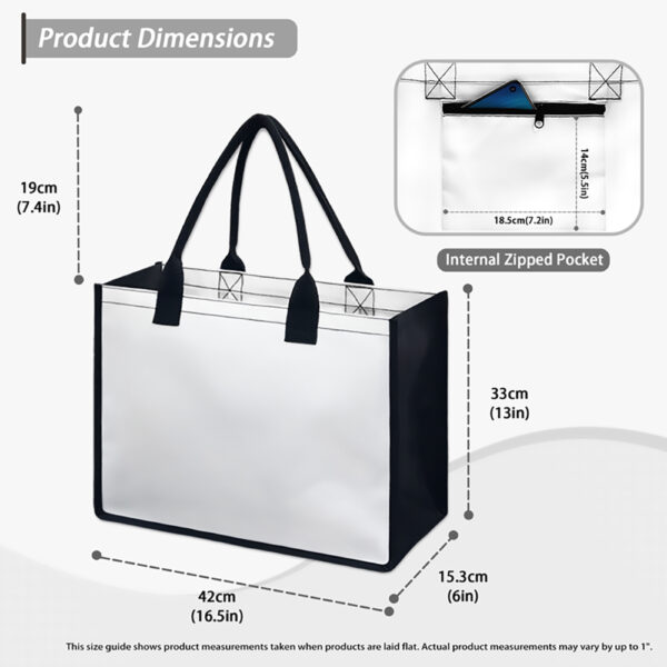 • Crafted from a premium 85% polyester and 15% cotton blend, this bag offers both durability and a soft feel. It’s machine-washable, tear-resistant, and built to last.