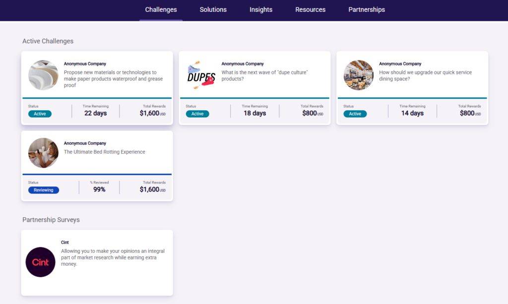 MindSumo is a lesser-known platform where individuals (particularly students and professionals) can earn money by solving real-world business challenges for companies seeking innovative solutions. Skilled participants can make between 550 and and1,600 per project.